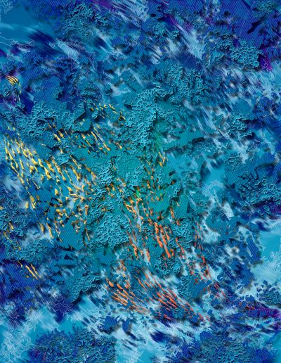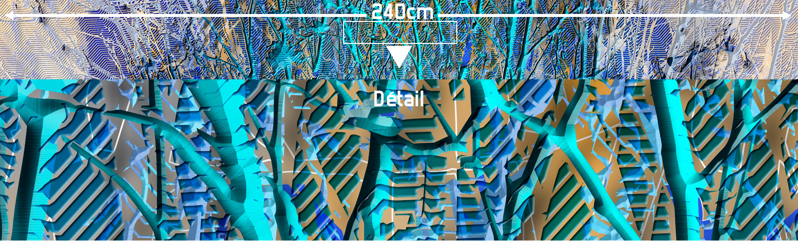 Cette écriture singulière et novatrice, associée à l’impression numérique, me permet de réaliser des œuvres qui offrent une expérience sensorielle riche, grâce à leurs textures détaillées et leurs nuances subtiles, invitant les spectateurs à une contemplation prolongée et immersive.